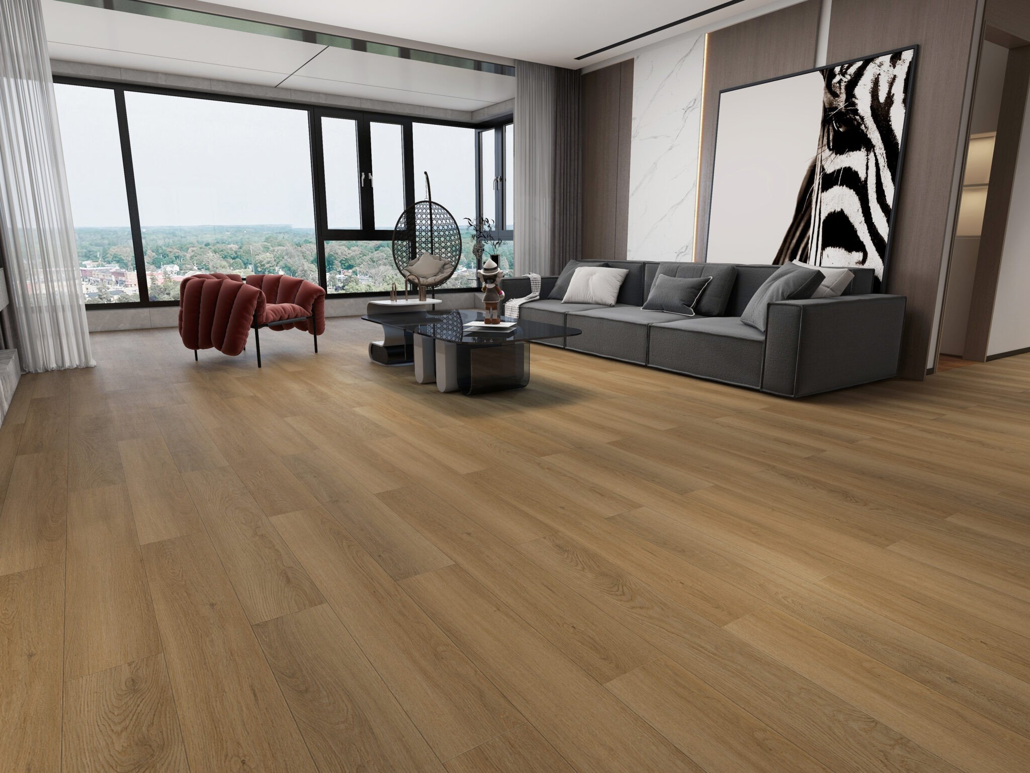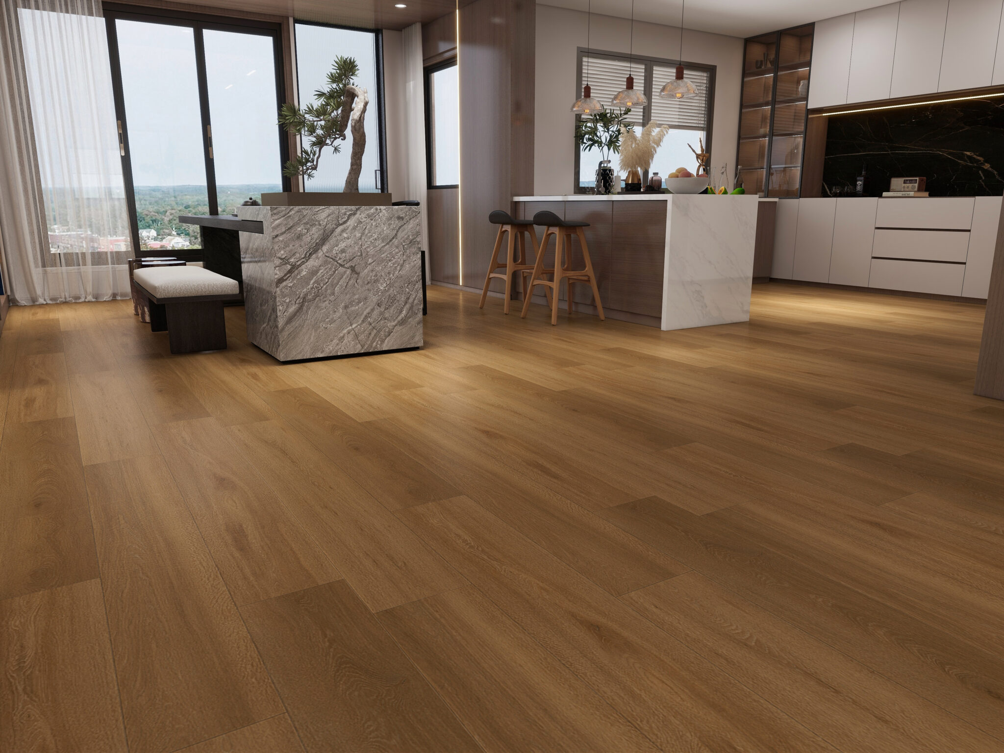 Captures the gentle glow of natural oak infused with a soft caramel tone, evoking comfort, sophistication, and timeless charm.