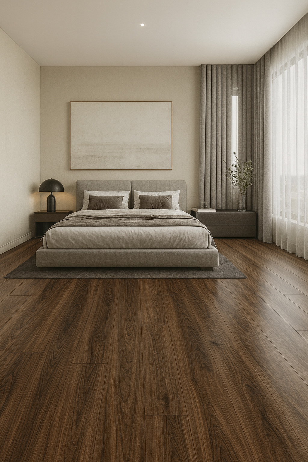 Its deep, golden-brown tones and expressive grain patterns evoke an atmosphere of warmth and intimacy that
